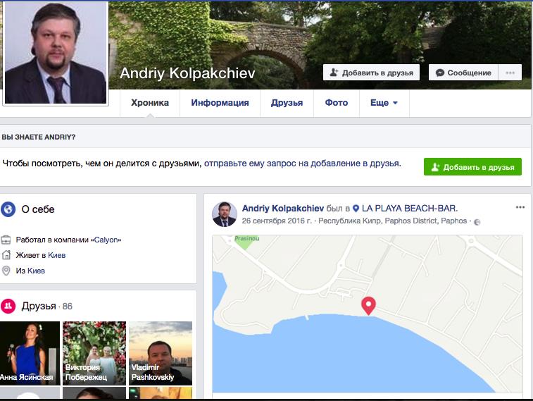 Упомянутый в прессе как участник преступной схемы Андрей Колпакчиев во время следствия, в сентябре 2016 года, “чекинится” на Кипре. На “хозяйстве” в Credit Agricole остается Вадим Ганах.