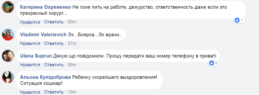 "У младшей Анастасии заболел живот, рвота, температура. Привезли в Киевскую областную детскую больницу в г.Боярка. А там празднуют по полной – отмечают старый новый год. Хирург лыка не вяжет. Пьяный в драбадан. Ему мол не симптомы нужны, а ему видите ли нужно установить контакт с ребенком. Твари... Сказал, если не будет другого врача, то вызываю полицию", - написал он.=