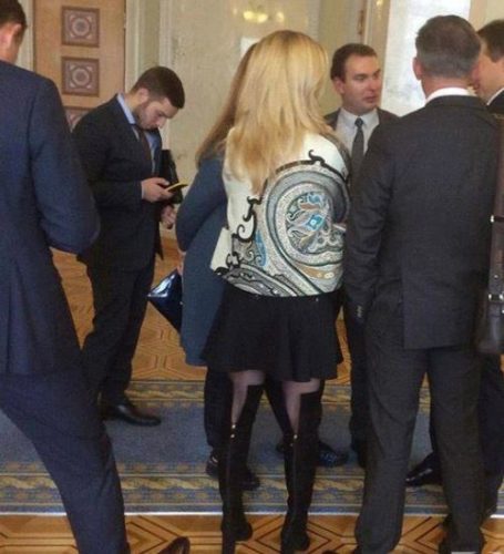 Депутат від фракції “Народний фронт” Тетяна Донець прийшла на засідання Верховної Ради в дорогому платті від Louis Vuitton. Вона обрала сукню і ботфорти на високих підборах від французького будинку моди.