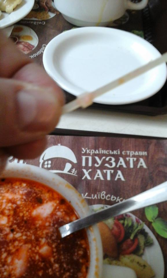 В борще ресторана "Пузата Хата" на улице Большой Васильковской в Киеве клиенту попался "посторонний предмет".