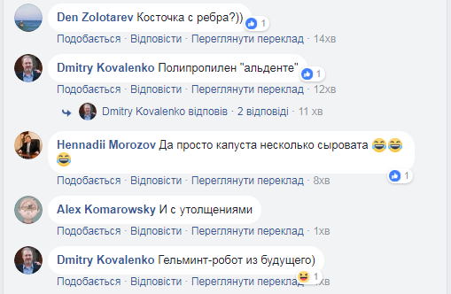 "Попадаются непроваренные ингредиенты. Будьте внимательны", - сообщил в своем Facebook пользователь Алексей Комаровский, опубликовав соответствующие фото.