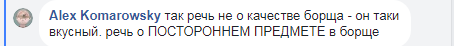 "Речь не о качестве борща - он таки вкусный. Речь о постороннем предмете в борще", - пояснил он
