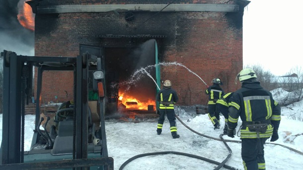 В Славянске Донецкой области в среду, 24 января, произошел пожар на складе горюче-смазочных материалов.