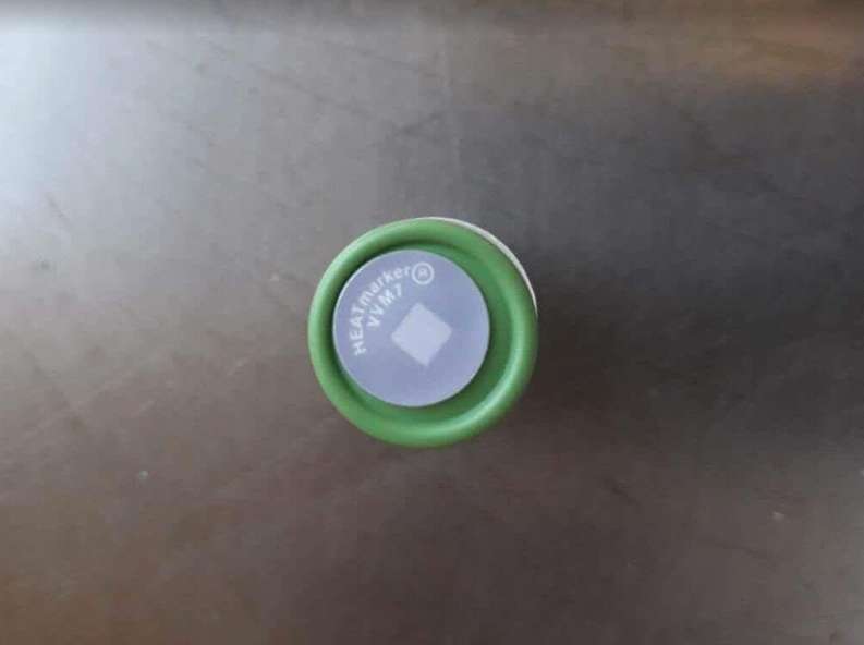 Термоиндикатор на флаконе - белый квадрат. Он показывает, что во время хранения вакцины не произошло повышения температуры.