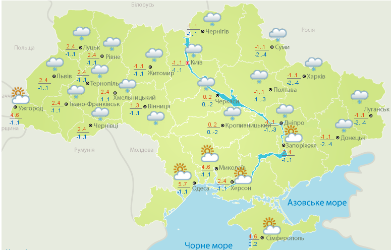 31 января ожидается также теплая погода. Температура не упадет ниже 1 градуса ниже нуля. Временами пройдет снег, зато в южных областях Украины ожидается солнечная погода.
