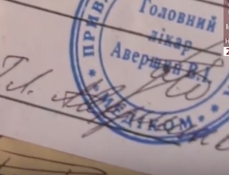 По его словам, предприятия «частная медицинская клиника Медиком» не существует в природе. Врачебной печати такого вида, где указывается наименование клиники, где работает доктор – не существует в принципе. Подпись – тоже не его. Главврач отказался показать настоящие печати учреждения, чтобы их не подделали мошенники, когда увидят в сюжете.