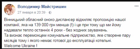 "И это при том, что мы ему предоставляли тепло последние четыре года без замечаний", – пишет Майстришин.