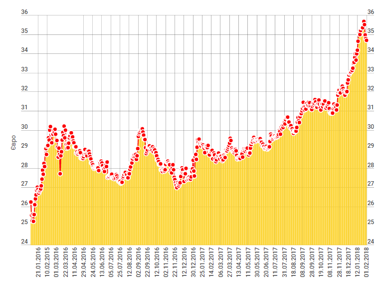 Евро же потеряет еще 10 копеек и его курс составит 34,68 гривень