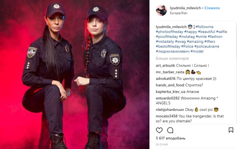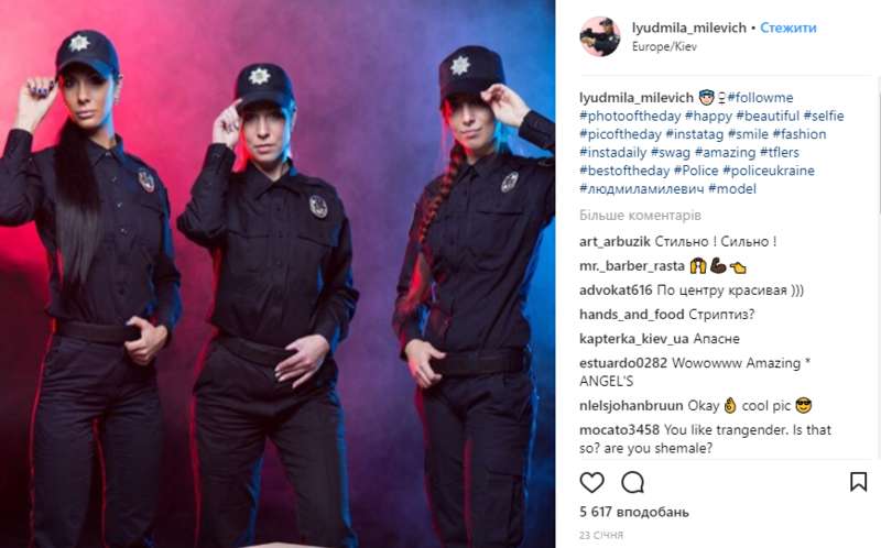 Найвідоміша київська поліцейська Людмила Мілевич поділилася в своєму Instagram фотосесією з колегами-копами.