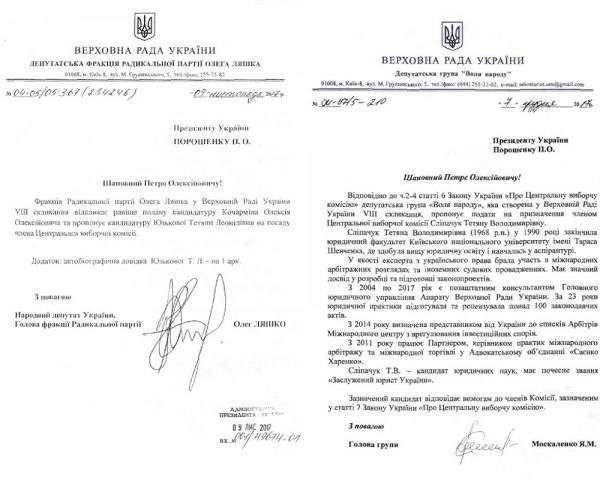Завдяки запиту чернигівського юриста та правозахисника Юрія Власенко, який 25 грудня звернувся до Адміністрації Президента, ми можемо проаналізувати відскановані копії пропозицій, що були подані депутатськими фракціями і групами стосовно призначення нових членів ЦВК.