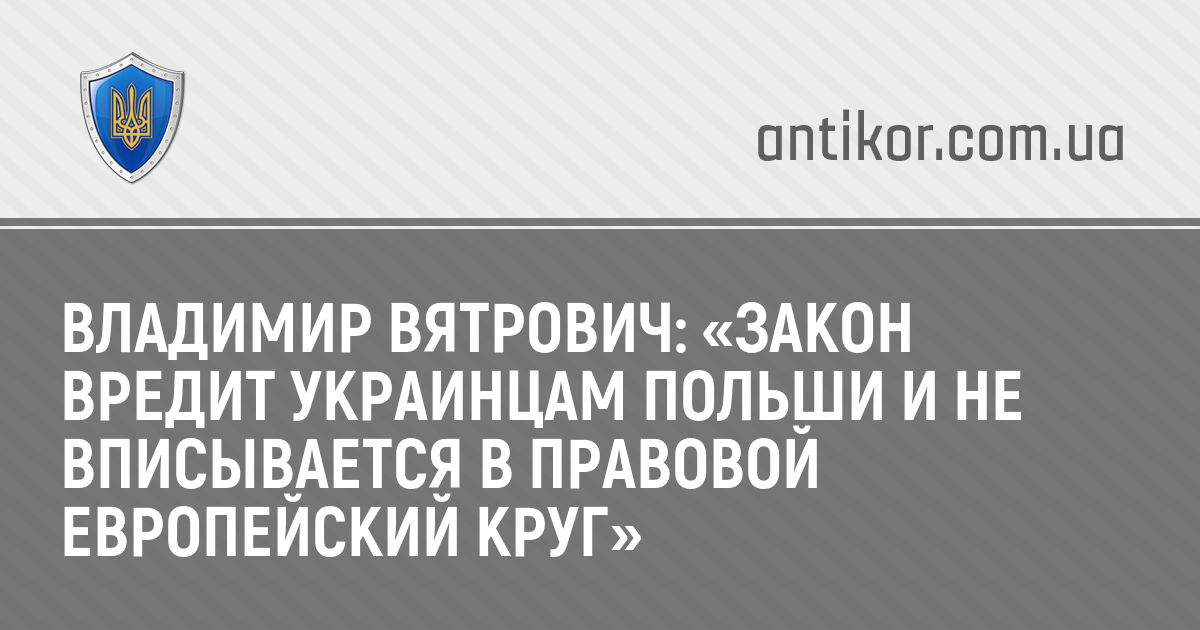 «Закон вредит прежде всего самой Польше, так как он является началом ограничения свободы слова и образования политического диктата на территории Польши. Он также вредит украинцам, находящимся в Польше, потому что они могут быть объектом интереса власти, как потенциальные носители бандеровской идеологии, о чем даже упомянуто в пояснительной записке к этому закону», — отмечает господин Вятрович.