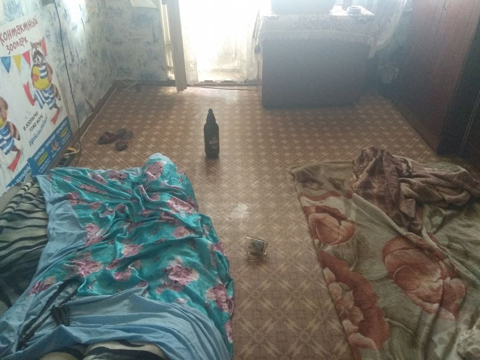 "Вонь, грязь, какие-то подозрительные, в наркотическом или алкогольном опьянении люди, на полу бутылки из-под спиртного, окурки и лужи крови. "Няня" рассказала о том, что утром здесь один из ее собутыльников пытался покончить жизнь самоубийством, резал вены и его забрала скорая", - описала место и ситуацию Мельник.