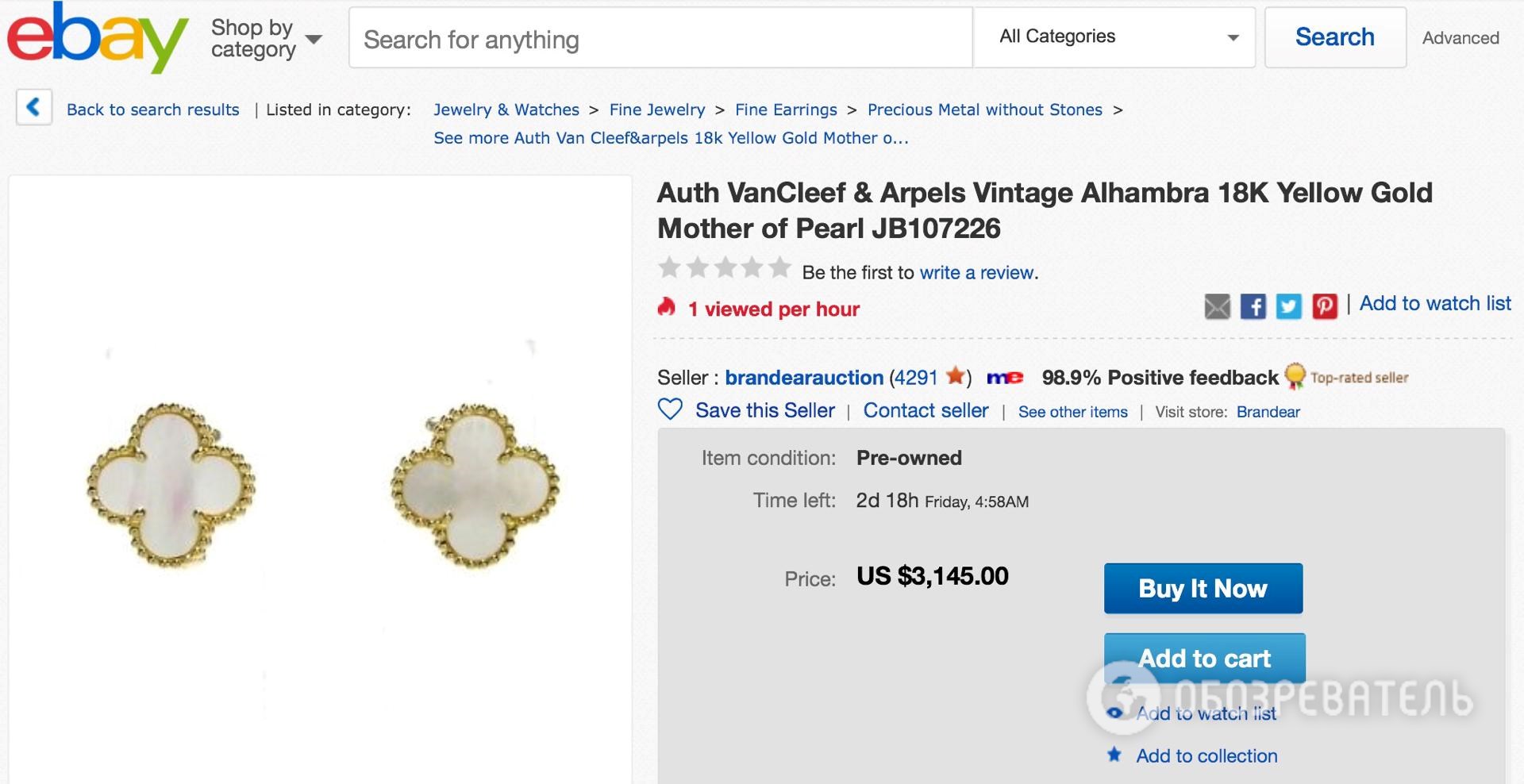 Примечательно, что такие же серьги на всемирно известном сайте eBay, правда, ношеные и в желтом золоте, можно купить всего за $3145