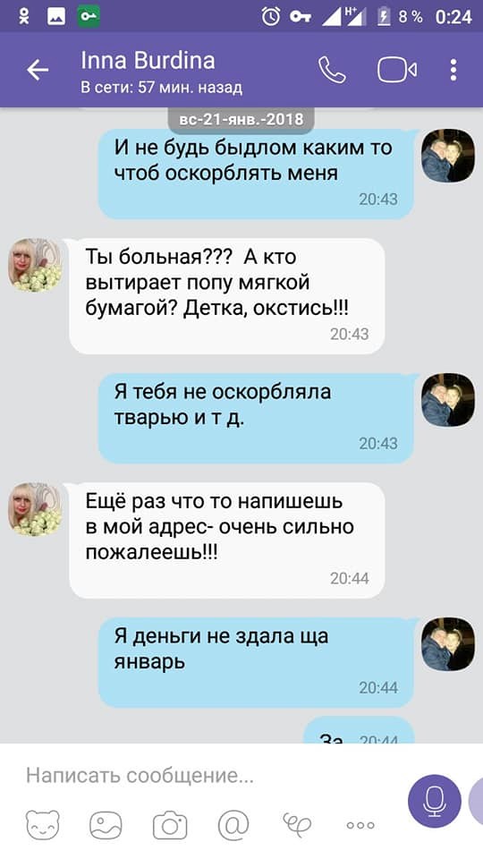 К своему посту она прикрепила скрины диалога, которые ей показала жертва агрессивных нападок родителей. На них видно, в какой оскорбительной форме с женщиной общается одна из мам, требуя немедленно сдать деньги на средства гигиены, воду, ксерокс и прочее. Более того, после просьбы не общаться в такой манере, неадекватная родительница перешла на угрозы, отметив, что любое замечание в ее адрес обернется в последствия, за которые одинокой матери придется очень жалеть.
