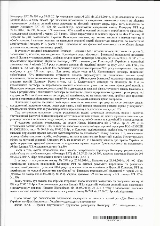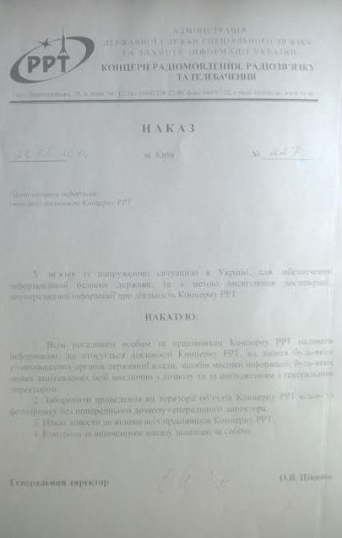 Поэтому работники пишут обращения к народным депутатам, к правительству и Администрации Президента. Требование одно. Отстранить от руководства Концерном РРТ людей, которые уже сегодня работают на интересы России. Ведь война на информационном поле является столь же важной как та, что идет сейчас между украинской армией и террористами.