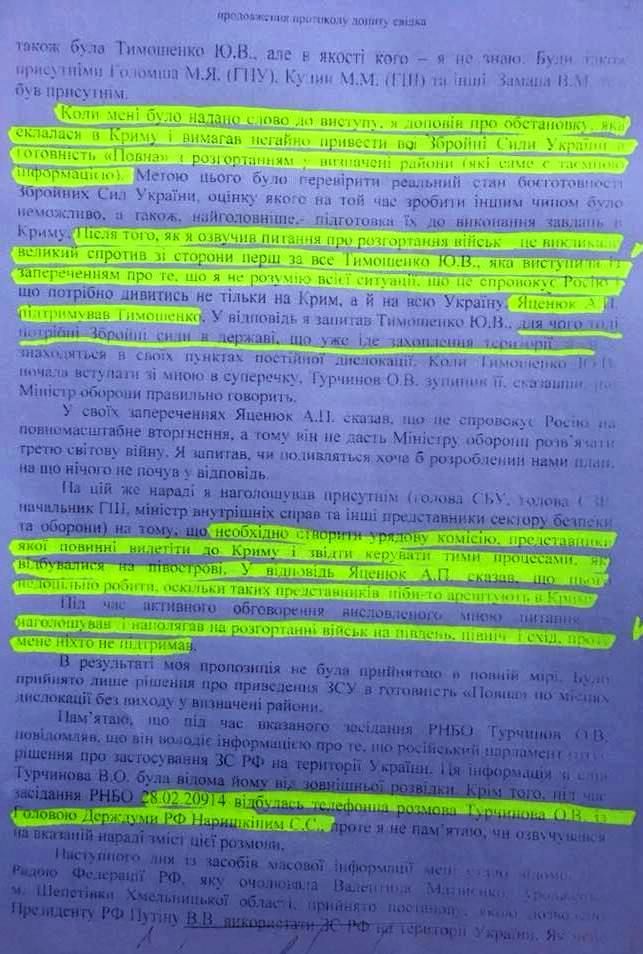 Об этом сообщил в Фейсбуке адвокат Януковича Виталий Сердюк, ссылаясь на копии протоколов допроса бывшего министра обороны Игоря Тенюха.