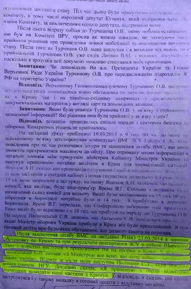 Тенюх: Крым сдали по распоряжению Пашинского и Полторака. Документ