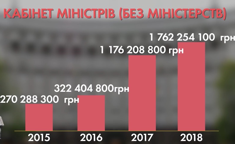 Самый большой рост финансирования Кабмина произошел в 2017-м году - сразу на 850 млн гривен.