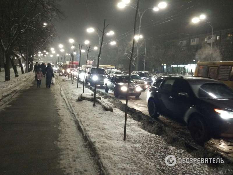 Вскоре на улице Телиги выключилось уличное освещение. Из-за ДТП образовалась пробка в несколько километров. Движение парализовано от станции метро "Дорогожичи" и к Кирилловской церкви.