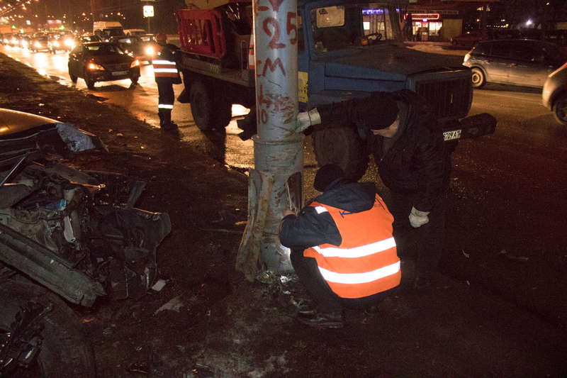 Правоохранители сообщили, что сам водитель (1980-го года рождения) видимых повреждений не получил, однако был сразу госпитализирован. По факту также разбито два светильника уличного освещения.