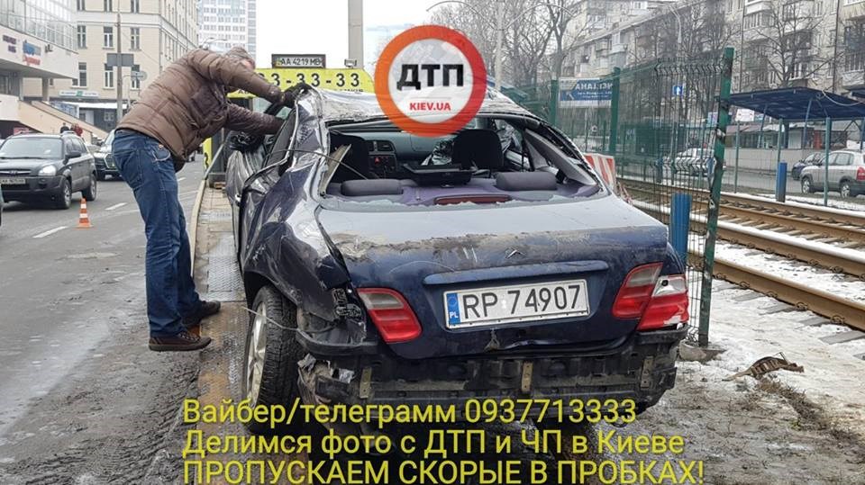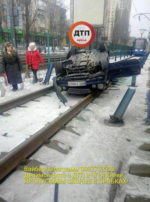 Авто опрокинулось на рельсы: в Киеве иностранцы устроили масштабное ДТП и сбежали