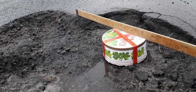 Активисты измеряли ямы на дороге «Киевским тортом» от Рошен