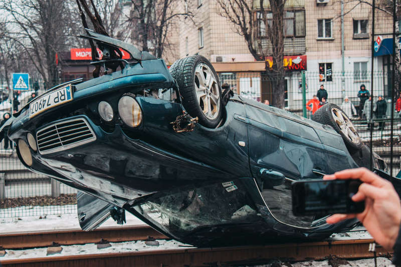 Напомним, что упомянутая авария произошла 18 февраля на пересечении улиц Борщаговская и Гарматная. Mercedes на еврономерах столкнулся с автомобилем Ford и перевернулся. От удара оба автомобиля вылетели на трамвайные рельсы. После аварии водитель Mercedes выбрался из машины сам, пересел в другую машину и уехал. Из-за ДТП на несколько часов остановилось движение трамваев.