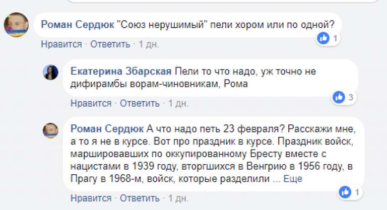 Ее пост вызвал дискуссию в Facebook, подписчики и друзья депутата не поддержали. Депутата упрекнули в том, то она поздравляет с "праздником советского оккупанта":