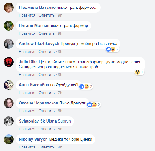 "Это такой врачебный юмор", "Креативные дизайнеры", "Чтобы пациенты заранее привыкли", "Чтобы пациенты не залеживались", "Кровать-трансформер", - пишут юзеры.