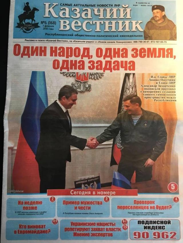 Первый заместитель главы Нацполиции Украины Вячеслав Аброськин отметил: «Пропаганда в Зазеркалье остается без изменений. На всех первых страницах „изданий“, как всегда, „отец народа Захарченко“, но хочу отметить, что этот недолидер сменил тельняшку на галстук. Видимо, услышал мою критику, потому что в реальной жизни он не имеет никакого отношения к любому подразделению Вооруженных Сил».