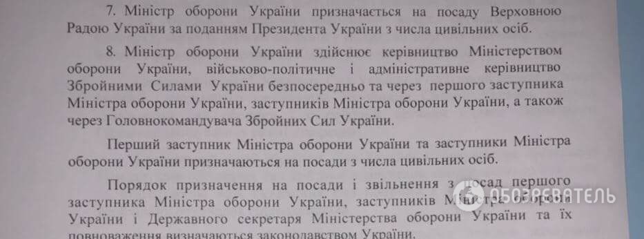 Точно также без изменений, со слов нардепа, останутся статьи, согласно которым, министр обороны и его первый заместитель смогут теперь назначаться из числа гражданских.