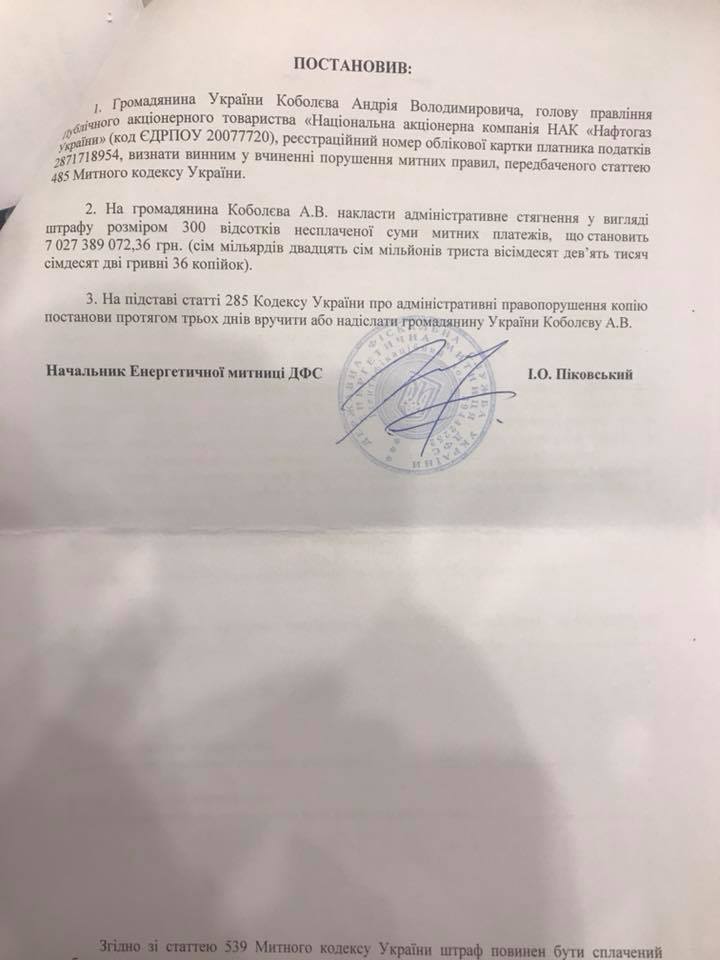 Теги: Государственная фискальная службаНАК НафтогазШтрафКоболев Андрей