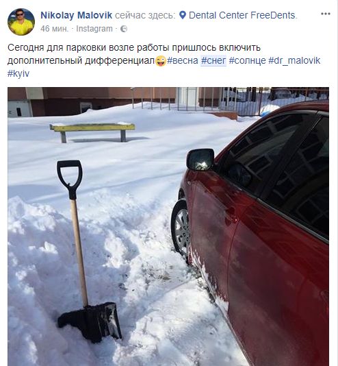 Пользователь Николай Маловик показал, как ему пришлось выкапывать свою машину из снега.