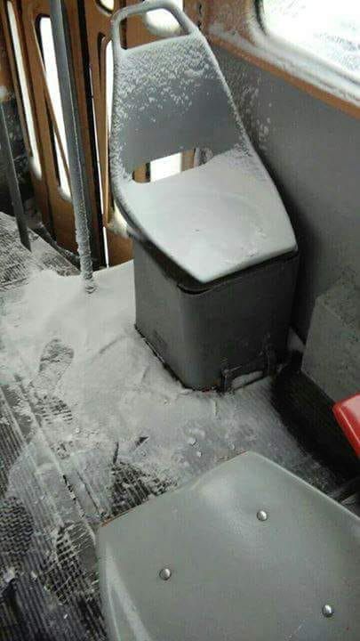 Также он показал фото, как выглядит внутри столичный травмай, засыпанный снегом, с подписью: "Оставляйте авто дома! Пользуйтесь общественным транспортом!"