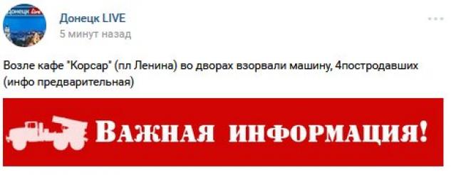 Мощный взрыв в центре Донецка: взорвался автомобиль, есть пострадавшие