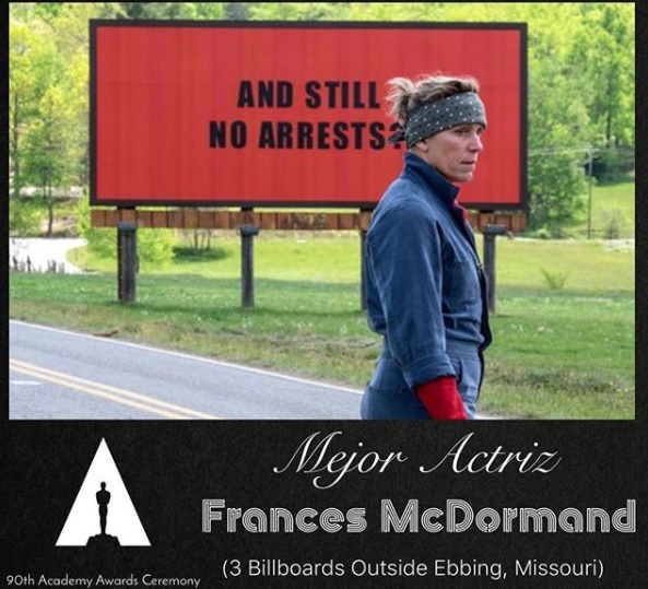 Лучшая женская роль - Фрэнсис Макдорманд за фильм "Три билборда на границе Эббинга, Миссури"