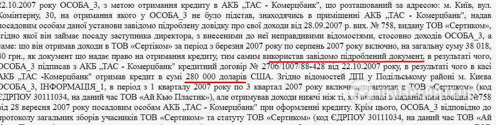 Подоную махинацию с подделкой документов Захарчук в 2007 году провернул и с банком "ТАС - Комерцбанк", получив в итоге $280 тыс. кредита.
