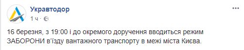Кроме того, с вечера пятницы в Киев запрещен въезд грузового транспорта до дальнейших распоряжений.