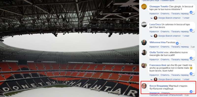 Итальянский фотограф Джорджио Бьянчи показал, как выглядит в марте 2018 года донецкий стадион "Донбасс Арена". Пронзительные снимки автор разместил у себя на странице в Facebook.