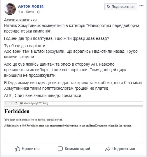 Эксперты связывают столь скоропалительное окончание кампании с тем, что Виталий Хомутынник забыл поставить в известность о своих планах самого важного игрока – Администрацию Президента. Как сообщают наши источники, выдвижение Хомутынника может осложнить и без того непростые отношения между Виталием Ковальчуком и остальными близкими к Петру Порошенко людьми, ведь это явно просчет ответственного за политику в регионах.