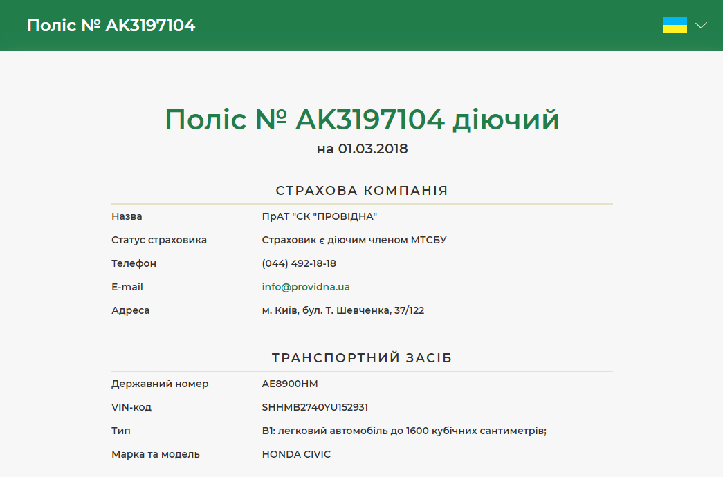 Так, база МТСБУ сообщает, что страховку имеет только Honda. У Nissan ее нет. Собственно, тут нас база МСТБУ ничем особо не помогла.
