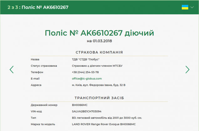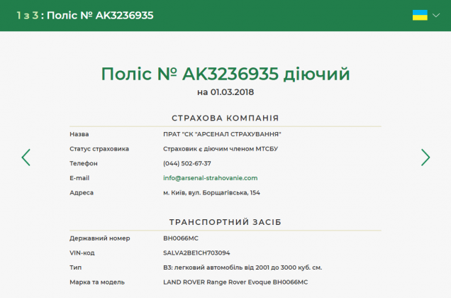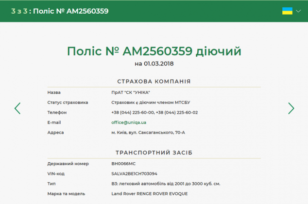 Зато поиск по номеру ВН 0066 МС, который имеют одесские Range Rover Evoque сходу выдает информацию, что по такому номеру выданы три полиса автогражданки. Все — в разных страховых компаниях, и все три в данный момент действительны (Autonews.ua искали по состоянию на 1 марта 2018, когда появились новости об этих двойниках). Более того — у всех автомобилей указан один vin-код