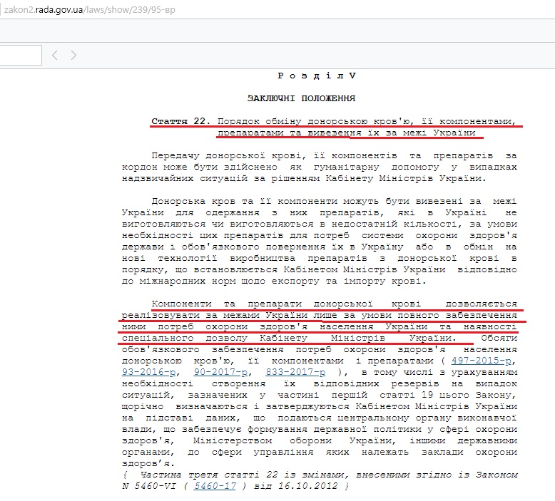 Формулировка: «не влияют на потребности населения Украины», здесь ключевая. В противном случае, экспорт крови за пределы страны был бы невозможен по закону.