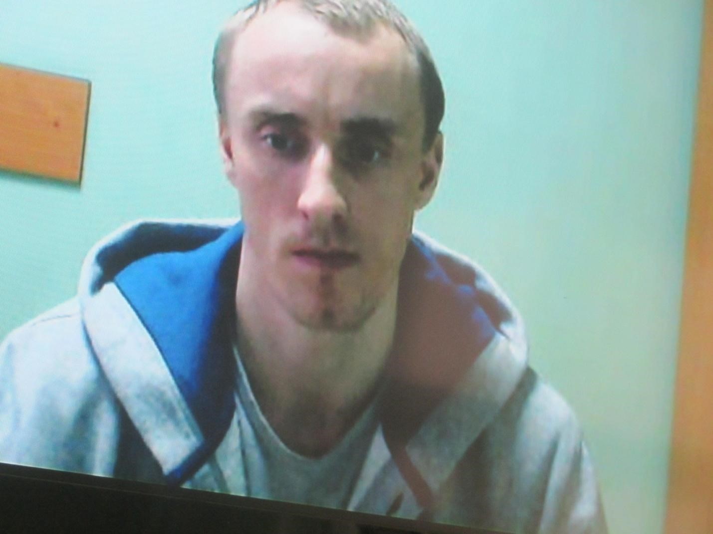 Сергей Чемес в Дарницком райсуде присутствует в режиме видео-конференции из СИЗО. По приказу Крысина он сбил с ног журналиста Веремия.