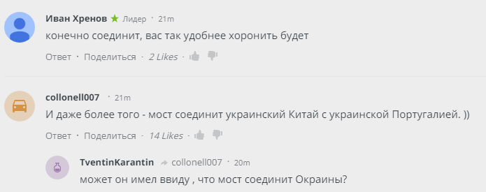 "С политической точки зрения я вижу, что это мост, который соединит украинский Крым и украинскую Кубань", - заявил министр инфраструктуры Украины Владимир Омелян, пишет UNN.