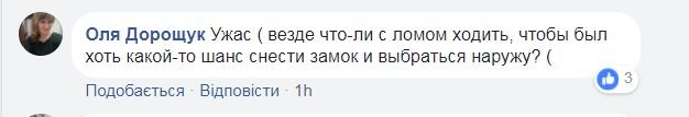 "Ужас. Везде что ли с ломом ходить, чтобы был хоть какой-то шанс снести замок и выбраться наружу?" – пишет Оля Дорощук.
