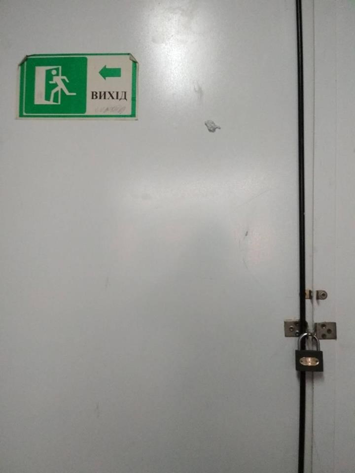 В частности, в сети показали фото из ТЦ "Магеллан", который находится в Киеве на проспекте Глушкова, 13б. На снимках, опубликованных Анной Аксеновой в Facebook, показаны запертые на навесные замки пожарные выходы, узкие и захламленные проходы с легковоспламеняющимися материалами, неработающие входные двери и отсутствие лифтов.