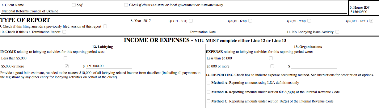 Примечательно, что украинский клиент был самым крупным для лоббистской компании за весь 2017 год.
