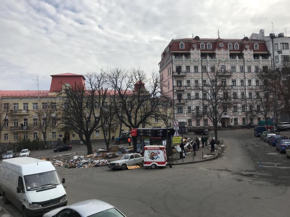В среду, 4 апреля, коммунальные службы Киева при поддержке патрульной полиции осуществили демонтаж торговых площадок и МАФов на верхней площадке Андреевского спуска (Сквер с памятником Прони и Голохвастову) и напротив 25 школы.