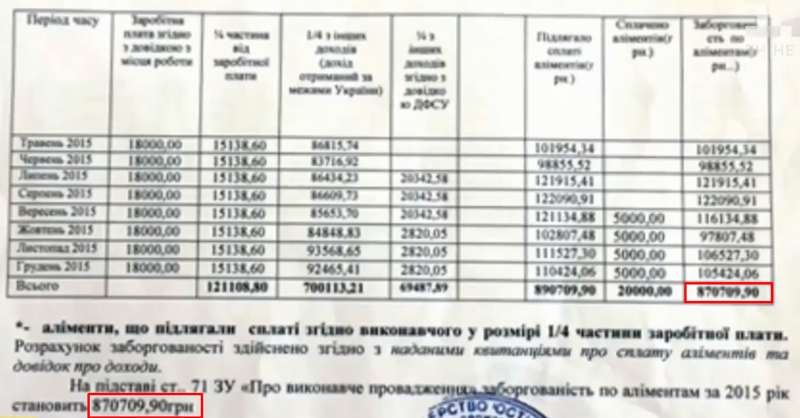 Согласно справке исполнителя, задолженность Шовковского составляет больше 870 тыс. грн за 2015 год, по материалам исполнительного производства за 2016 год – около 850 тыс. грн.